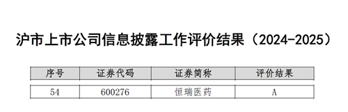 与此同时,在上海交易所公布的2024-2025年度沪市上市公司信息披露工作评价中,Ag尊龙凯时医药再次荣获最高评级——A级。